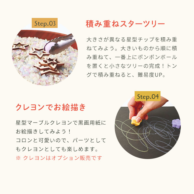 ⇒オプション(+500円)星型マーブルクレヨン(パープル&イエロー)